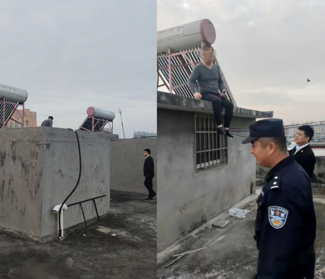 现场二:楼顶“躲猫猫”,干警“火眼金睛”识破伪装