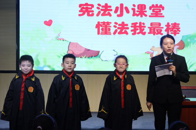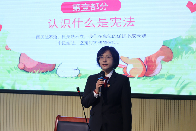 “同学们,宪法是国家的根本大法,它规定了我们的基本权利和义务,就像一棵大树的树根,是所有法律的基础……”活动现场,青年法官张婉斌用通俗易懂的语言,结合生动案例,向同学们讲解了宪法的地位、作用以及与日常生活息息相关的条款。讲解过程中,法官不时抛出问题,“我们都有受教育的权利,这写在宪法的哪一条呀?”“爸爸妈妈抚养我们,是他们的权利还是义务呢?”同学们聚精会神,争相回答,在互动问答中加深了对宪法知识的理解。