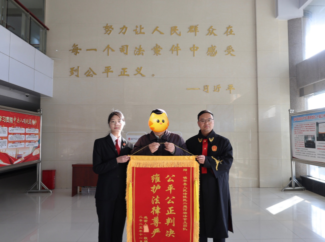 “法官同志,真是太谢谢你们了!这笔钱对我来说太重要了!”近日,年逾七旬的高某专程来到镇平县人民法院,将一面绣有“公平公正判决 维护法律尊严”的锦旗郑重地送到民二庭承办法官何杨手中,言语间满是对法院公正审判的感谢。