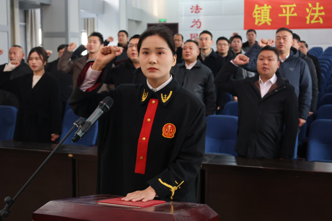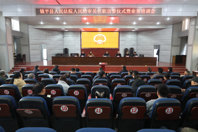 为进一步规范人民陪审员履职行为,充分发挥人民陪审员在司法审判中的重要作用,12月19日,镇平县人民法院召开人民陪审员任职宣誓仪式暨业务培训会。镇平县法院党组书记、院长杨永安,县人大联任委主任宋晓明、副主任王雷,县司法局副局长李冬、基层工作指导股股长尚政出席会议,全体新任人民陪审员参加会议。会议由党组成员、政治部主任谭照印主持。