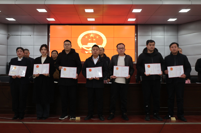 会上,谭照印宣读人民陪审员任命决定。7名人民陪审员代表上台领取任命书,这份沉甸甸的任命书,既是荣誉的见证,更是责任的镌刻与使命的重托。