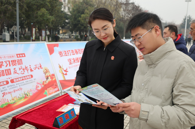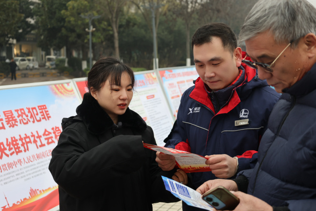 在《中华人民共和国反恐怖主义法》颁布实施十周年之际,为进一步筑牢反恐防线,提升全民反恐意识,12月23日,河南省镇平县人民法院组织干警来到县中心法治广场,以“全民反恐 共创平安”为主题开展法治宣传活动。